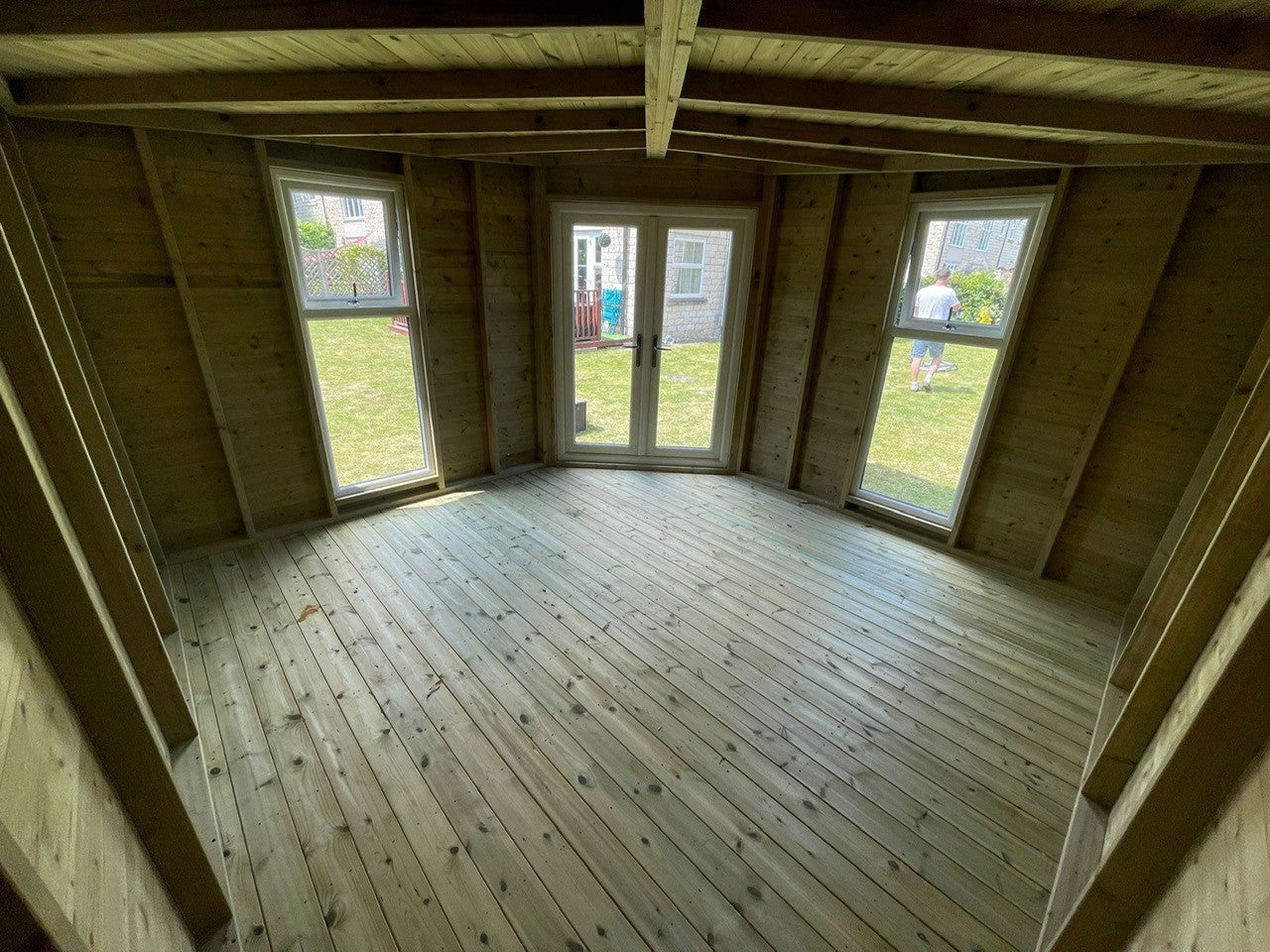 All our buildings are pressure treated which carries a 10 year guarantee against wood rot or insect infestation. Although all our timber is tanalised, the building will still require 1-2 coats of a sufficient oil based water repellent. We advise this is carried out as soon as possible after installation and annually there after.